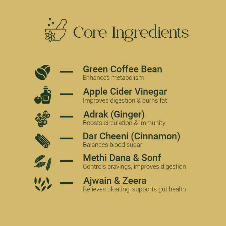 A natural herbal blend thoughtfully crafted to support digestion, energy, and everyday balance—helping you feel light and active throughout the day.